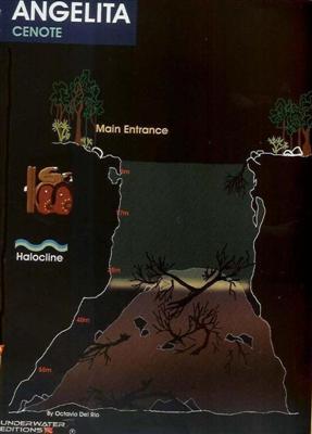 Dykker man ned på de 28 meter, ser man en hvid “sky” og dykker man ned gennem “skyen” og når ned til saltvandet, er der mørkt som på Nat dyk.