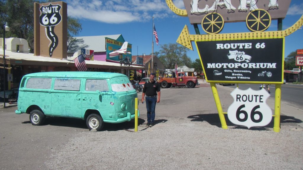 Dag 13: Las Vegas, Nevada – Barstow, Californien ca. 380km. Denne dag byder på et langt stykke af den originale Route 66 – fra Las Vegas til Kingman og så videre til Oatman, hvor æslerne går frit rundt i byen. Vi forlader for et kort øjeblik Route 66 og kører til spillebyen Laughlin ved bredden af Colorado floden og videre til Barstow, Californien hvor vi overnatter.