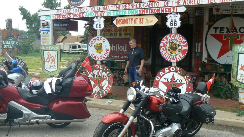 Dag 5: St. Roberts, Missouri – Strout, Oklahoma, ca. 507km. Vi kører videre af det korteste stykke af Route 66, der findes i Kansas. Vi stopper ved Old Riverton i byen Riverton. Butikken er i dag hjemsted for Kansas Route 66 Association. Turen fortsætter ind i staten Oklahoma, hvor vi næsten udelukkende kører på den gamle Route 66. Vi besøger “The Round Barn” i Arcadia inden vi fortsætter til byen Strout, hvor vi overnatter.