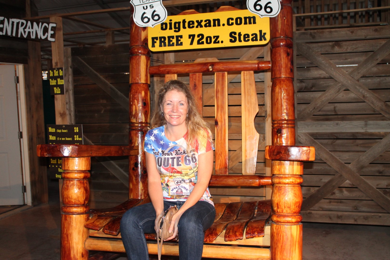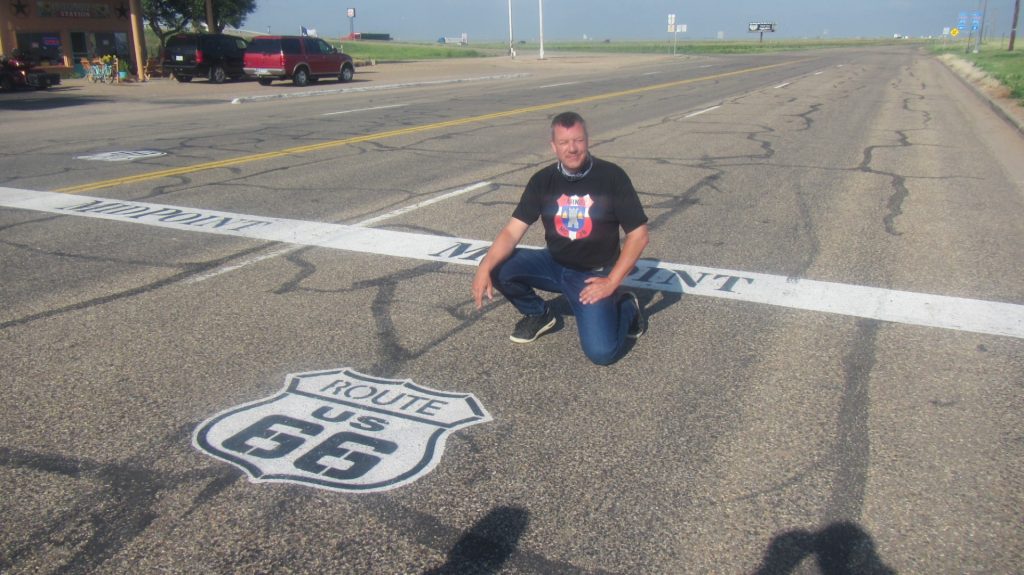 Dag 6: Strout, Oklahoma – Amarillo, Texas ca. 505km. Vi kører igennem Oklahoma City, og ud på prærien til byen Clinton. I Clinton findes måske den bedst bevarede hemmelighed på Route 66, nemlig Oklahoma Route 66 Museum. Dette museum fortæller den bedste og nok mest omfattende Route 66 historie af de mange som findes på ruten. Du kan passende afslutte dagen på The Big Texan Steak Ranch, mest berømt for sin 72 ounce steak som med tilbehør er gratis, hvis du kan spise menuen på under en time. Verdensrekorden indehaves i øjeblikket af Joey Chestnut, USA som fortærede hele menuen på 8 minutter og 52 sekunder.