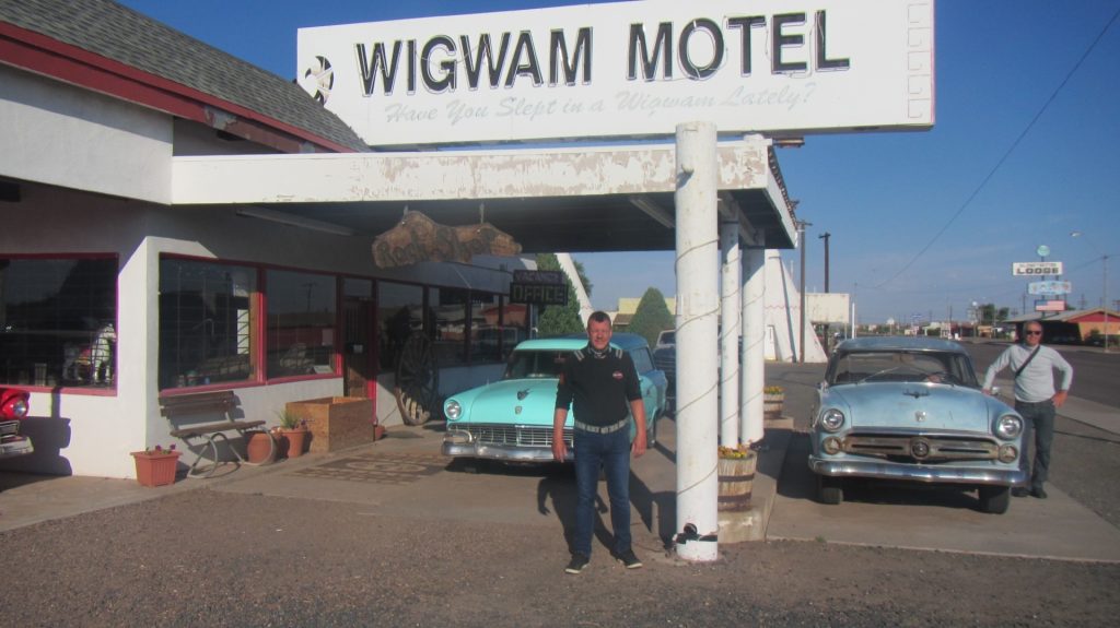 Dag 9: Santa Fe, New Mexico – Holbrook, Arizona ca. 470km. Vi fortsætter i staten Arizona, som vil byde på nogle af de største oplevelser på turen. Vi kører ind i ørkenen kaldet Painted Desert, med de flotte farver og videre ind i national parken Petrified Forest, som er en forstenet skov, der kan dateres mere end 225 millioner år tilbage i tiden. Overalt ligger der spredte forstenede træstammer. Vi kører vi til western byen Holbrook, kendt for Wigwam Village, et motel med beton telte!